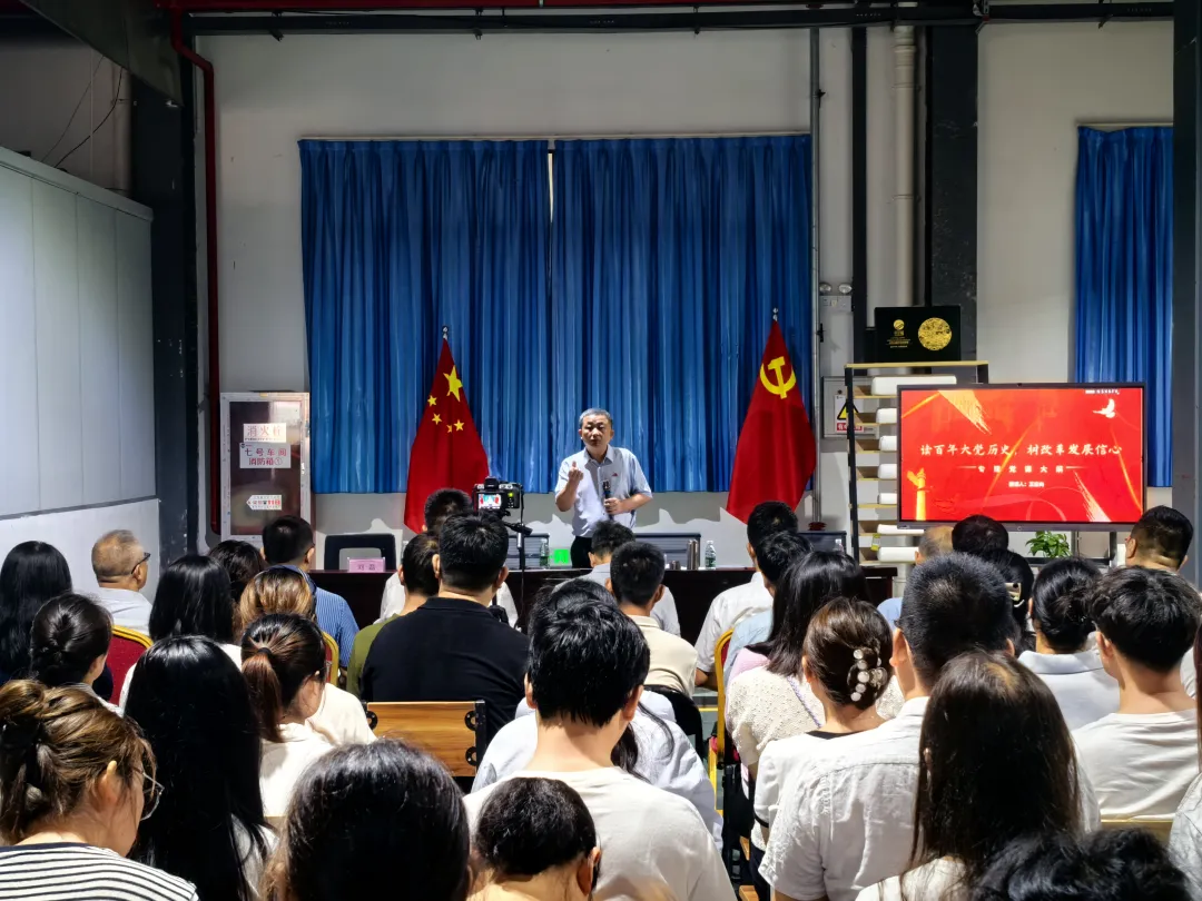 6月20日,海南橡膠黨委書記、董事長王宏向為安徽秦欄鎮愛德福公司乳膠發泡加工廠生產車間的70余名干部員工講授“讀百年大黨歷史,樹改革發展信心” 專題黨課。